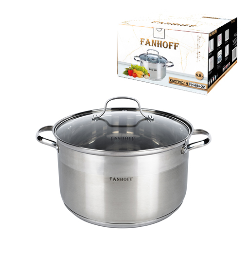 Кастрюля Fanhoff "Iveta" 5,0 л, 22*13,5 см FH-641-22 нержавеющая сталь