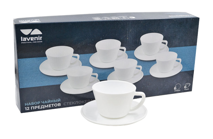 Чайный набор (12пр.) Lavenir 180 мл, 13,5 см KFB200-12 WHITE стеклокерамика