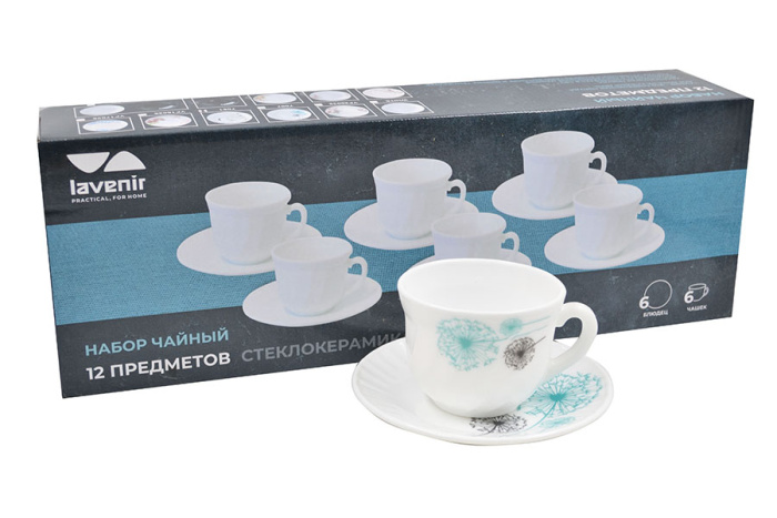 Чайный набор (12пр.) Lavenir 190 мл, 13,5 см HWB-190 7007 "Одуванчики " стеклокерамика