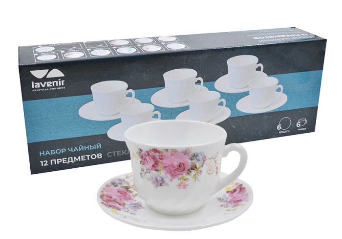 Чайный набор (12пр.) Lavenir 190 мл, 13,5 см HWB-190 A9-19010-1 "Анабель" стеклокерамика