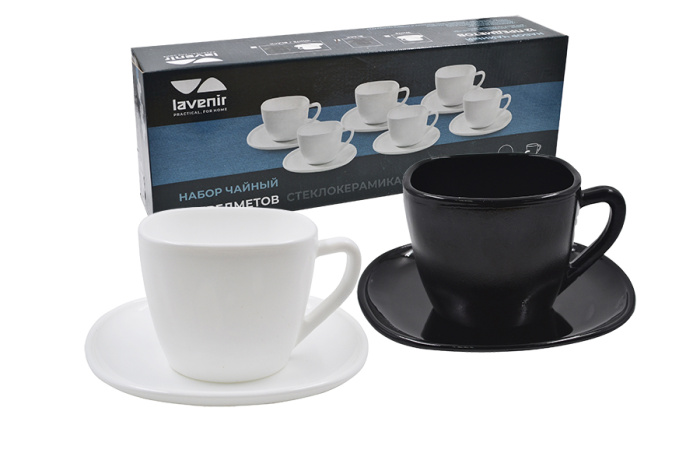 Чайный набор (12пр.) Lavenir 190 мл, 13,5 см HWB-190 7081 "Модена" стеклокерамика