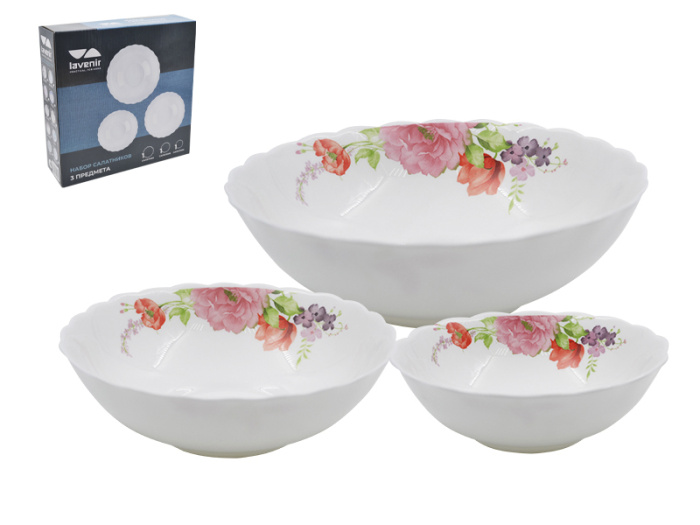 Набор салатников (3пр.) Lavenir "Анабель" 550/950/1350 мл, 5,5/6,5/7,5" XMW-3T A9-19010-1
