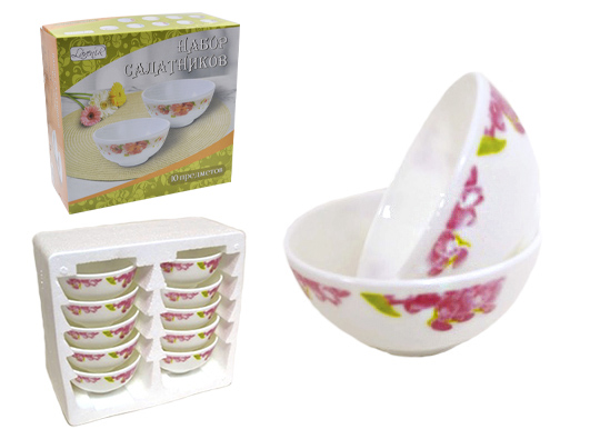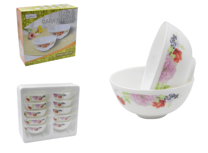 Набор салатников (10пр.) Lavenir "Шиповник" 250 мл, 11 см, 4,5" 10PCS A9-61100 стеклокер.
