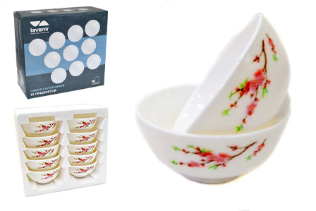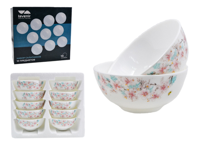 Набор салатников (10пр.) Lavenir "Сакура" 250 мл,11 см, 4,5" 10PCS A9-61122 стеклокер.
