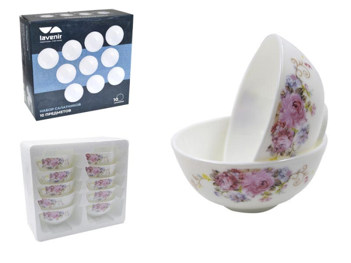 Набор салатников (10пр.) Lavenir "Розалия" 250 мл, 11 см, 4,5" 10PCS 7056 стеклокерамика