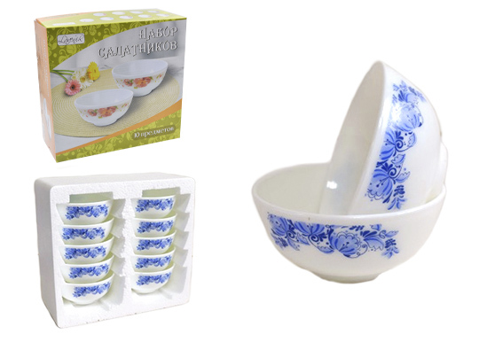 Набор салатников (10пр.) Lavenir "Лазурный узор" 250 мл, 11 см, 4,5" 10PCS YF-17036 стекл.
