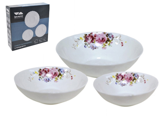 Набор салатников (3пр.) Lavenir "Валери" 460/680/1000 мл,15/18/20 см 3PCS HKW YF-14111-2