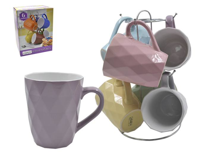 Набор кружек на м/подст. (6пр.) Lavenir "Нежный ромбик" 360 мл, 20159 керамика