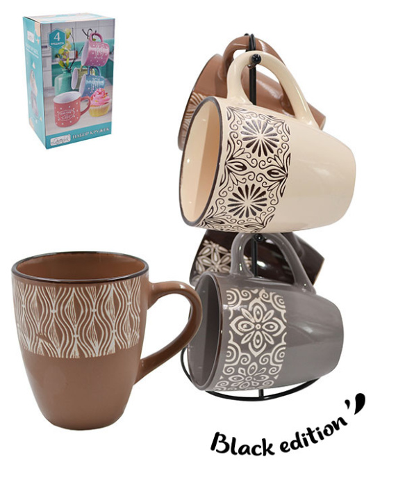 Набор кружек на м/подст. (4пр.) Lavenir "Стиль" 350 мл, 22102 керамика