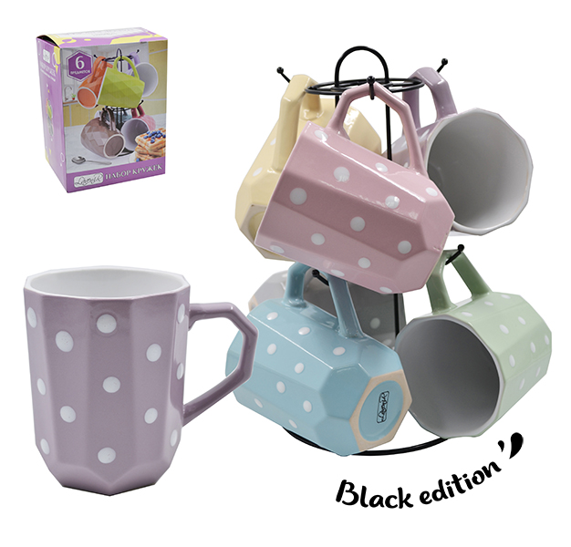 Набор кружек на м/подст. (6пр.) Lavenir "Нежный горошек" 330 мл, 171490 керамика