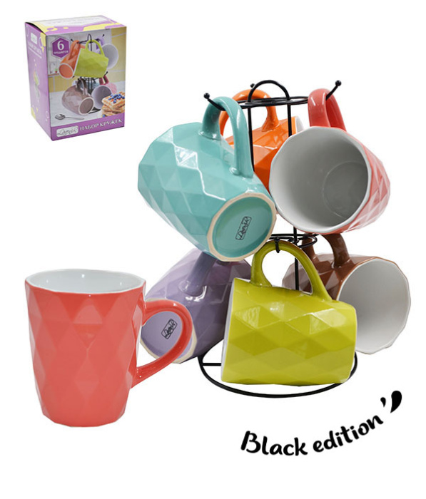 Набор кружек на м/подст. (6пр.) Lavenir "Яркий ромбик" 380 мл, 21663 керамика
