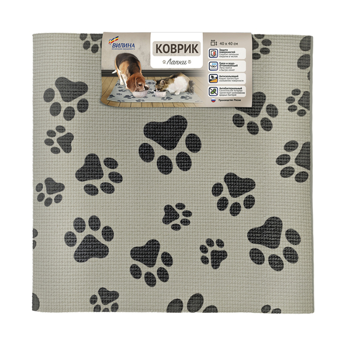 Коврик для ванны с присосками (37*70см) 7111 "Для животных" Лапки (серый)