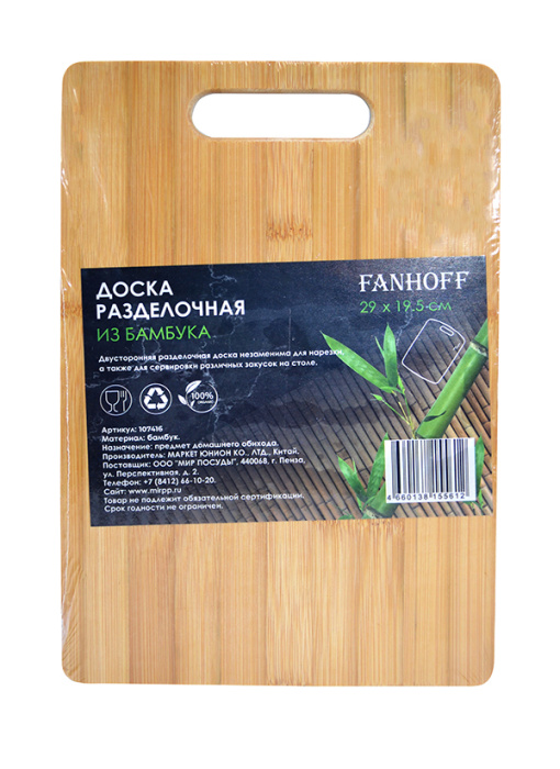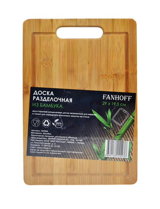 Доска разделочная Fanhoff 28*18 см, 107402 бамбук