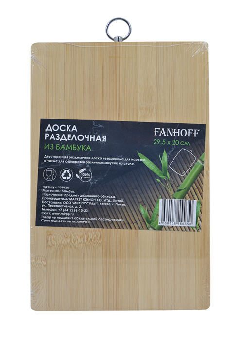 Доска разделочная Fanhoff 29,5*20 см, 107420 бамбук