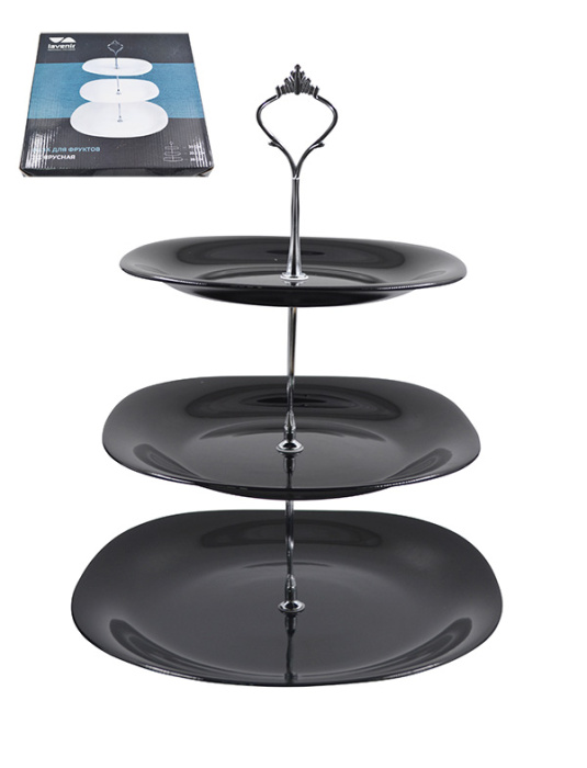 Ваза для фруктов 3-х ярусная Lavenir "Стиль" 21,5/24/28 см ЧЕРНЫЙ LFP3AT BLACK стеклокерамика