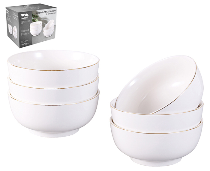 Набор салатников Lavenir "Элит" (6пр.) 1000 мл, 17,5*7,5 см, 7" 100-170 круг фарфор