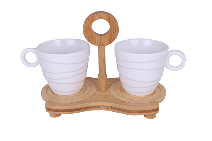 Набор кружек (2шт.) на бамбук. подставке 5523