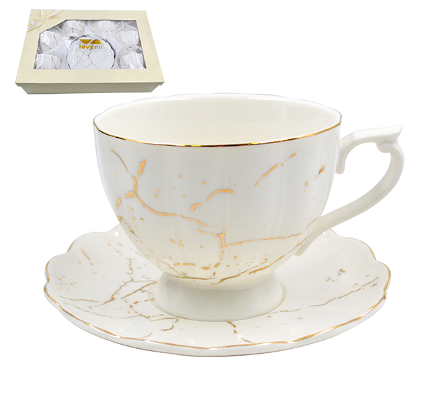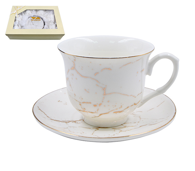 Набор в коробке (12 пр.) Lavenir "Золотой мрамор" 220 мл, 14 см, 176-647 фарфор