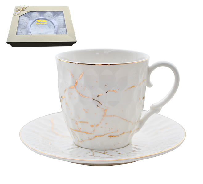 Набор в коробке (12 пр.) Lavenir "Золотой мрамор" 220 мл, 13,5 см, 176-609 фарфор