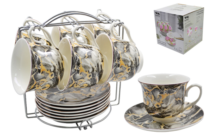 Сервиз на м/подст. (12 пр.) Lavenir "Черный мрамор" 220 мл, 14 см, C03-MRBBL 12M фарфор