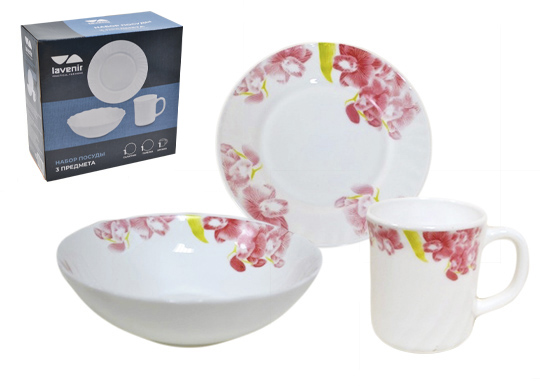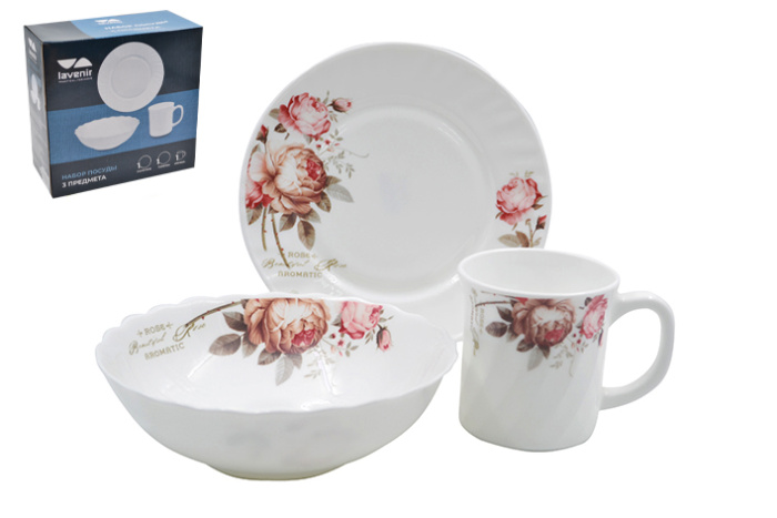 Набор для завтрака (3пр.) Lavenir "Шиповник" 250/630 мл, 18/18 см, 7/7" 3PCB A9-61100