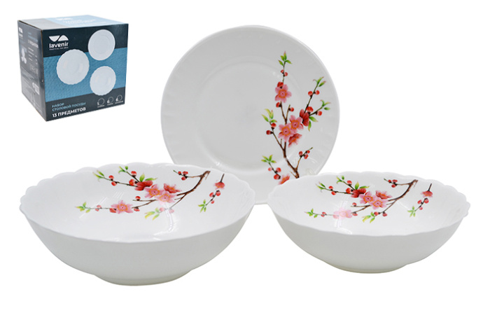 Столовый набор (13пр.) Lavenir "Сакура" 650/900 мл, 19/18/20 см, 7/7/8" 13PCS A9-61122