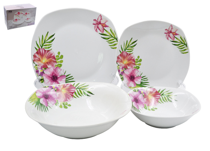 Столовый набор (19 пр.) Lavenir "Тропические цветы" квадр. 1200/600 мл, 22/18,5 см 19К-8007 фар