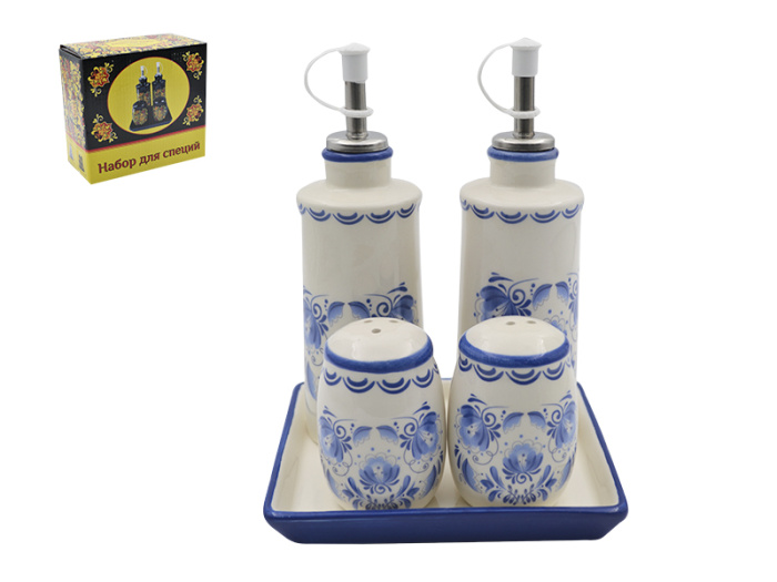 Набор для специй (4пр.) Lavenir "Лазурный узор" 210 мл, 6/17*15*2 см HC420-Z314 доломит