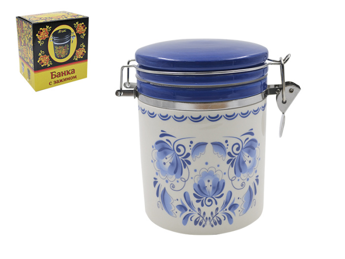 Банка с зажимом Lavenir "Лазурный узор" 650 мл, 10 см HC800-Z314 доломит