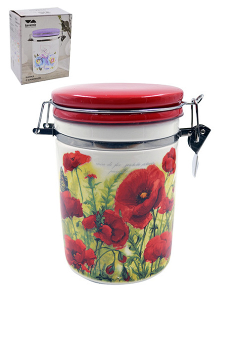 Банка с зажимом Lavenir "Маки" 825 мл, 10 см HC810-M12 доломит