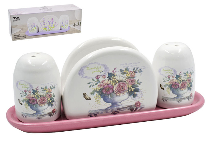 Набор для специй с салфетницей Lavenir "Прекрасный сад" 4,3/9,5*7/21*6 см HC415-K48 доломит