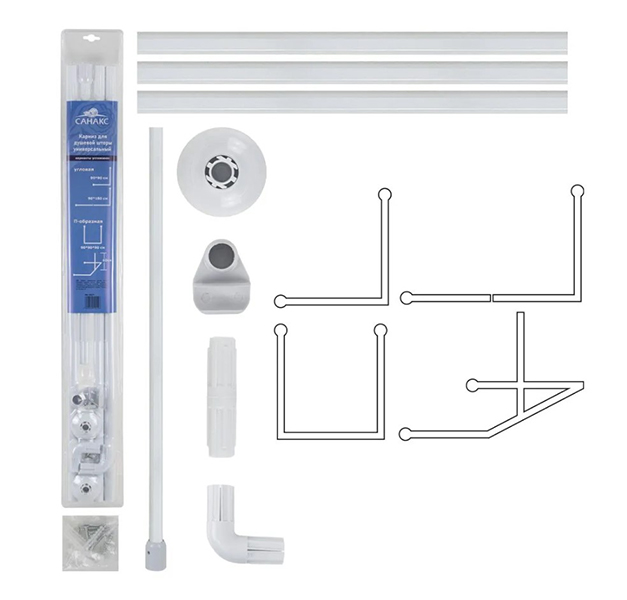 Карниз в ванну полукруглый 180 см/2*90 см, 108380 металл, пластик
